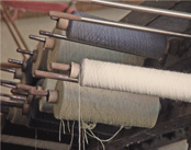 Garnspulen an der Zwirnmaschine | Die einzelnen Arbeitsvorgänge vom Spinnen des Flachses zur Kett- und Schussware in sogenannte Stränge, die Umspulung der Stränge auf Spindeln und das Weben selbst waren sehr zeitaufwändige und somit kostenträchtige Tätigkeiten. Die Mechanisierung bot daher gerade in diesem Gewerbezweig enorme Vorteile. Vorreiter waren die großen Webereien in den englischen Industriestädten. Deren preisgünstige Erzeugnisse hätten die Textilprodukte aus Deutschland verdrängt, wären die Webereien der technischen Umstellung nicht gefolgt. Damit wurden jedoch die Handwebereien unrentabel und lösten sich nach und nach auf. 1926, hundert Jahre nach der ersten Ziemetshauser Gewerbestatistik, war nur noch Georg Stegmann als Weber ansässig: Der Siegeszug der industriellen Weberei hatte begonnen. |